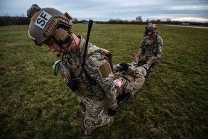 U.S. Air Force Staff Sgt. Estaban Gonawicha, 435th Security Forces Squadron ground combat readiness training center instructor, poses for a photo before exercise Frozen Defender in Grostenquin, France, Jan. 14, 2020. Frozen Defender tests the squadron’s capabilities in a contested environment under