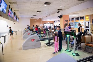 Felice Herrig, Ultimate Fighting Championship fighter, kisses her bicep after showing-up (right) Chris Weidman, former UFC Middleweight Champion, in a brief, friendly flexing competition on Ramstein Air Base, Germany, March 30, 2019. BJ Penn, former UFC Lightweight and Welterweight Champion, seen