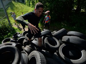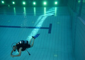Erhard Bauman, Ramstein Aquatic Center’s Professional Association of Diving Instructors open water certification instructor, demonstrates scuba diving without googles July 7, 2016, at Ramstein Air Base, Germany. The course is offered monthly for $475, which includes all gear and course material. It