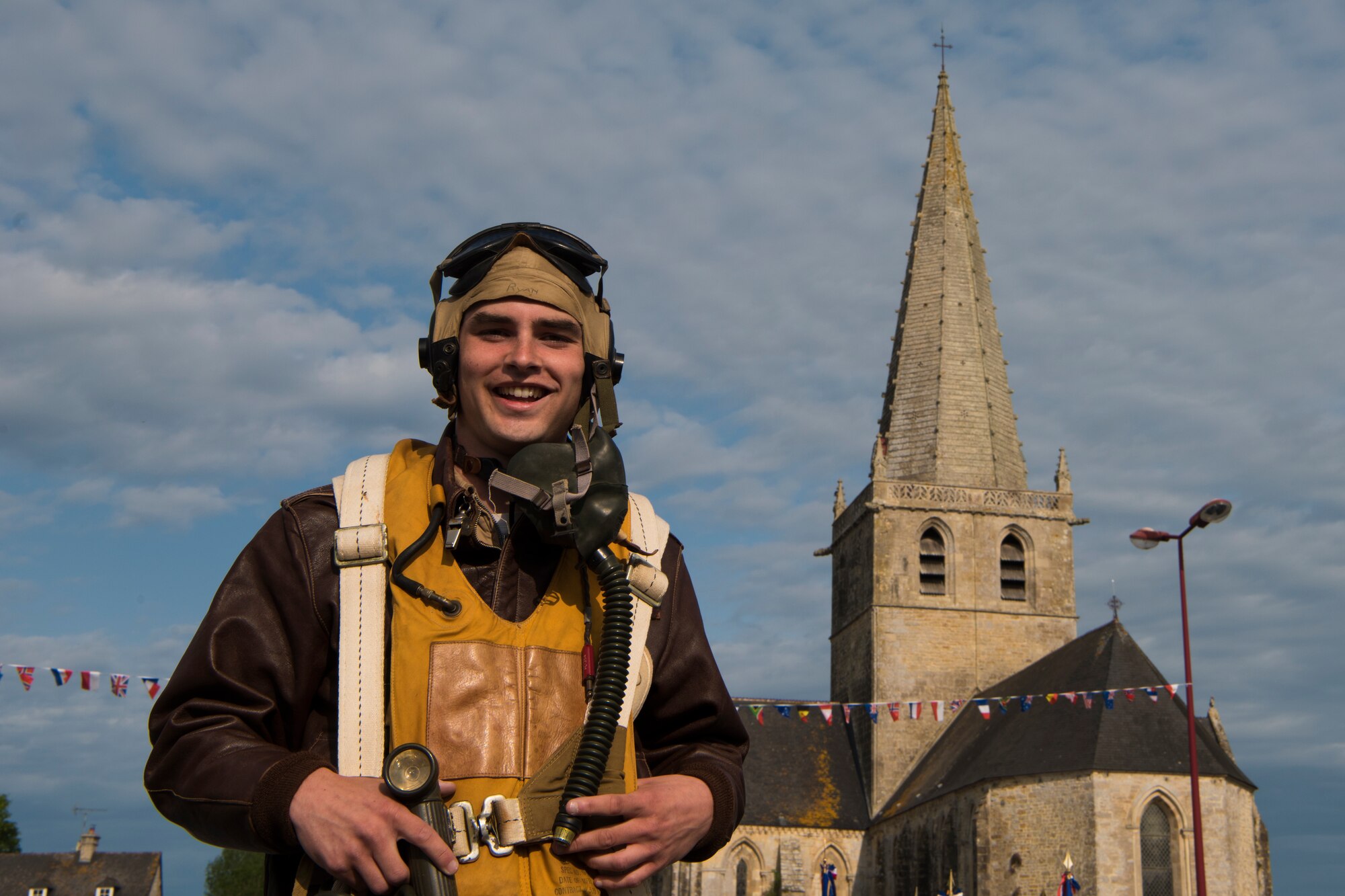 A U.S. Army airborne infantryman shakes the hand of retired Private First Class Joseph Morettini, 82nd Airborne, 508th Regiment, Easy Company, during a ceremony held to honor all airborne troops and flight crew that served on D-Day in Picauville, France, June 4, 2019. On June 6, 1944, Morettini dropped from midnight skies into Normandy with the objective to overtake an enemy stronghold near Picauville. During the ceremony’s conclusion, Morettini remarked to each active U.S. airborne infantrymen he shook hands with: “I dropped here 75 years ago.” (U.S. Air Force photo by Senior Airman Kristof J. Rixmann)