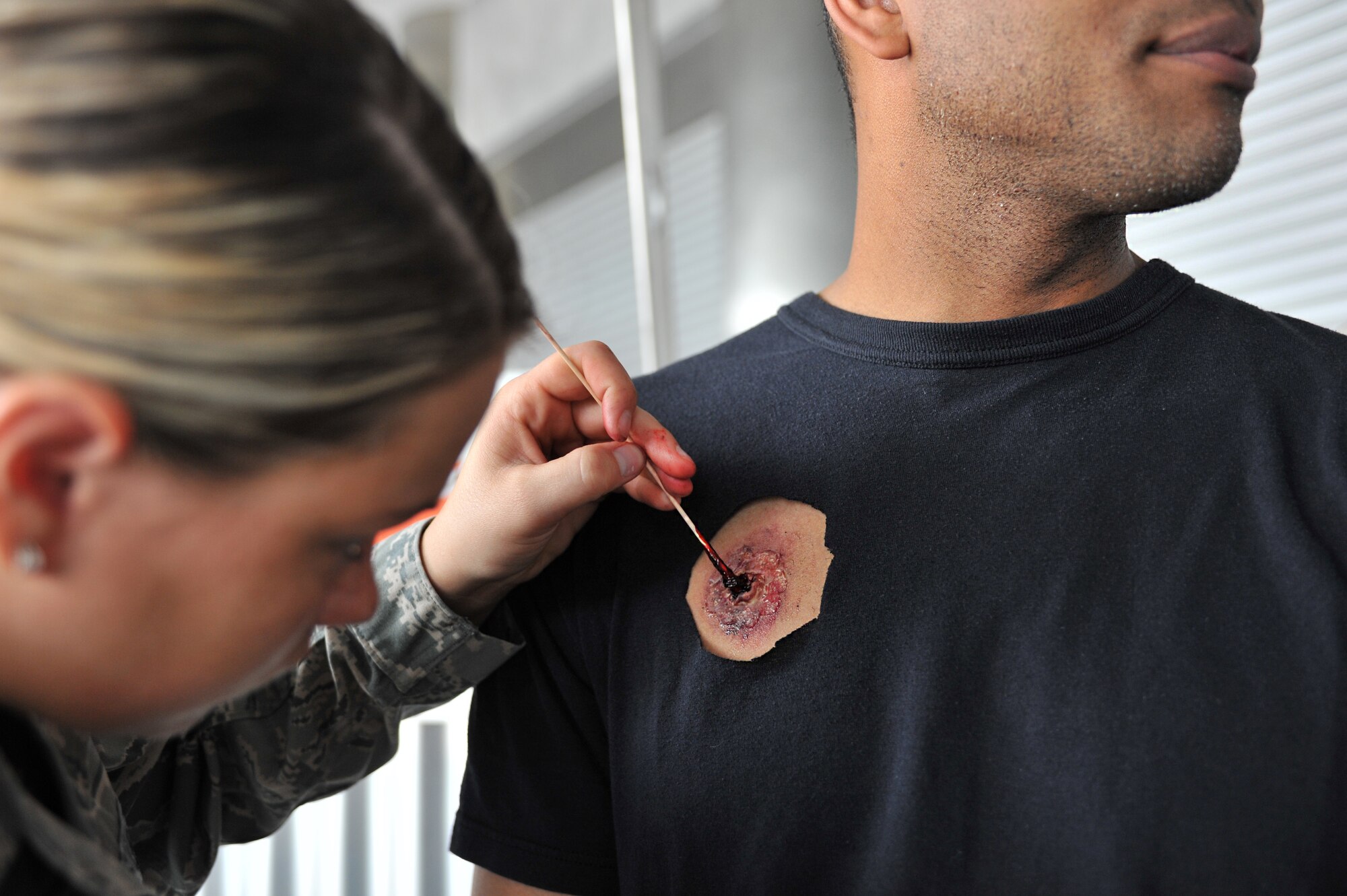 Senior Airman Jeff Gilmer, 786th Civil engineer Squadron, explosive ordinance disposal technician, performs standard procedures on a simulated unexploded ordinance during an operational readiness exercise scenario on Ramstein Air Base, Germany, May 10, 2012. The ORE incorporates a series of scenarios used to evaluate a base's readiness to execute operational duties while responding to various crises. (U.S. Air Force photo/Senior Airman Aaron-Forrest Wainwright)