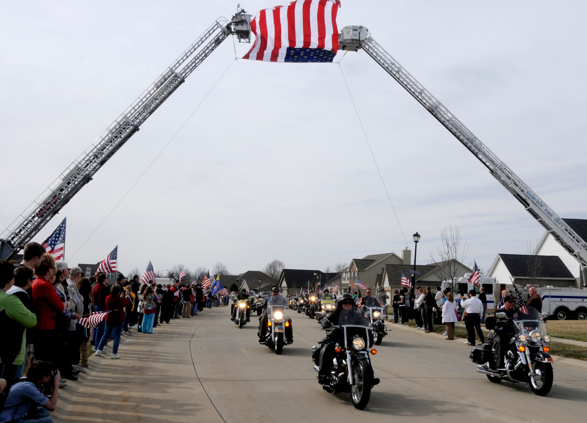 A sign on a local business near Scott Air Force Base, Ill. honors Airman 1st Class Zachary Cuddeback who was killed, along with another Airman, when a man opened fire on a bus of U.S. Airmen at an airport in Frankfurt, Germany March 2, 2011. Airman Cuddeback will be laid to rest next to his grandfather at a cemetery in O'Fallon, Ill. (U.S. Air Force photo/Staff Sgt. Brian J. Valencia)