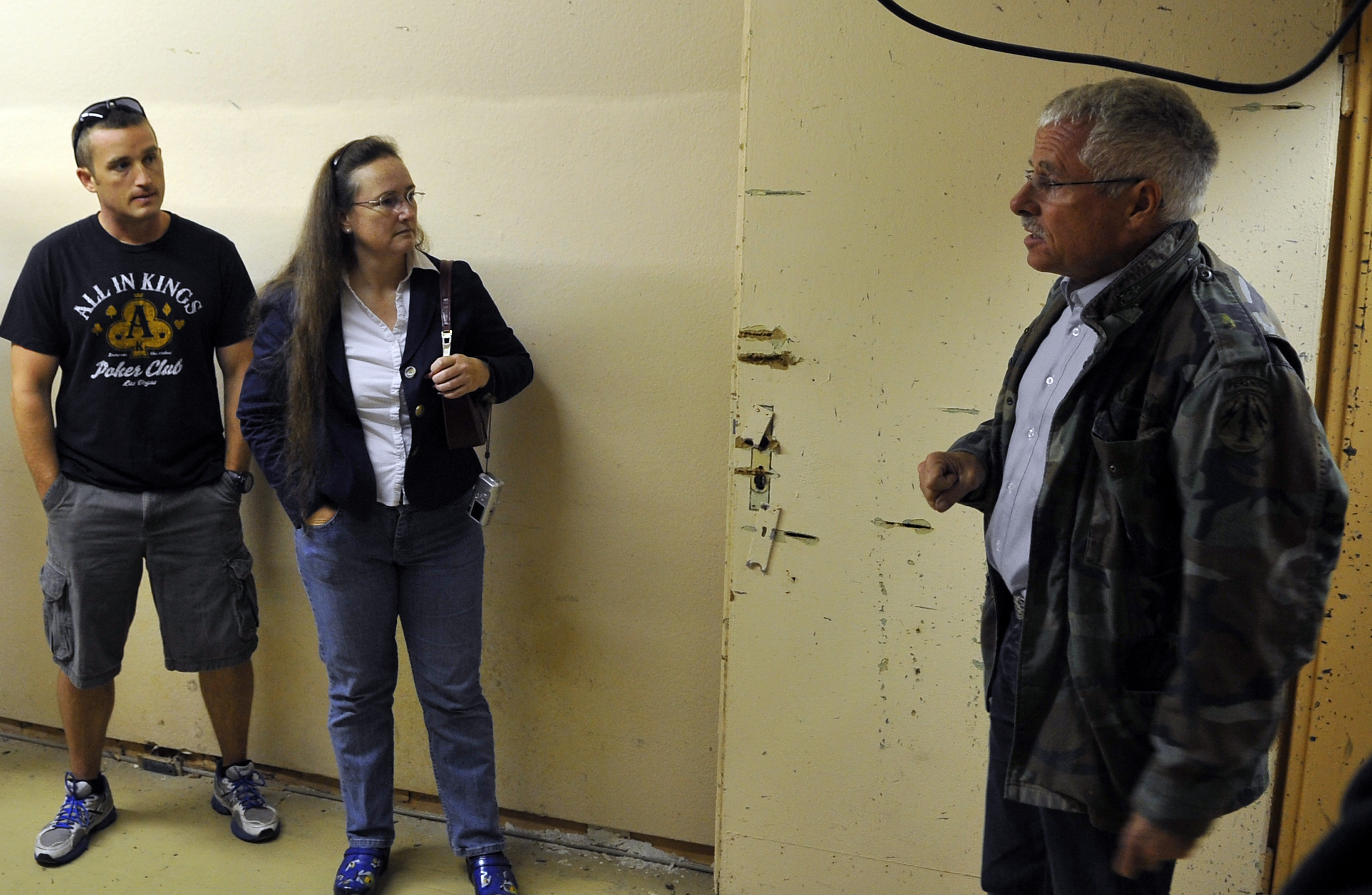 Wolfgang Wuermel, owner of the Kindsbach Cave, details a map of the Air Defense Operations Center bunker, Aug. 16, 2013, Kindsbach Cave, Germany. The bunker was built prior to World War II and was utilized for command and control operations for the German army. After the war, it was passed to the French, who used it primarily for storing munitions. The U.S. Air Force gained control of the bunker in 1954 and turned it back into a command and control center where air operations could have been led if the Cold War turned hot. (U.S. Air Force photo/Airman 1st Class Trevor Rhynes)