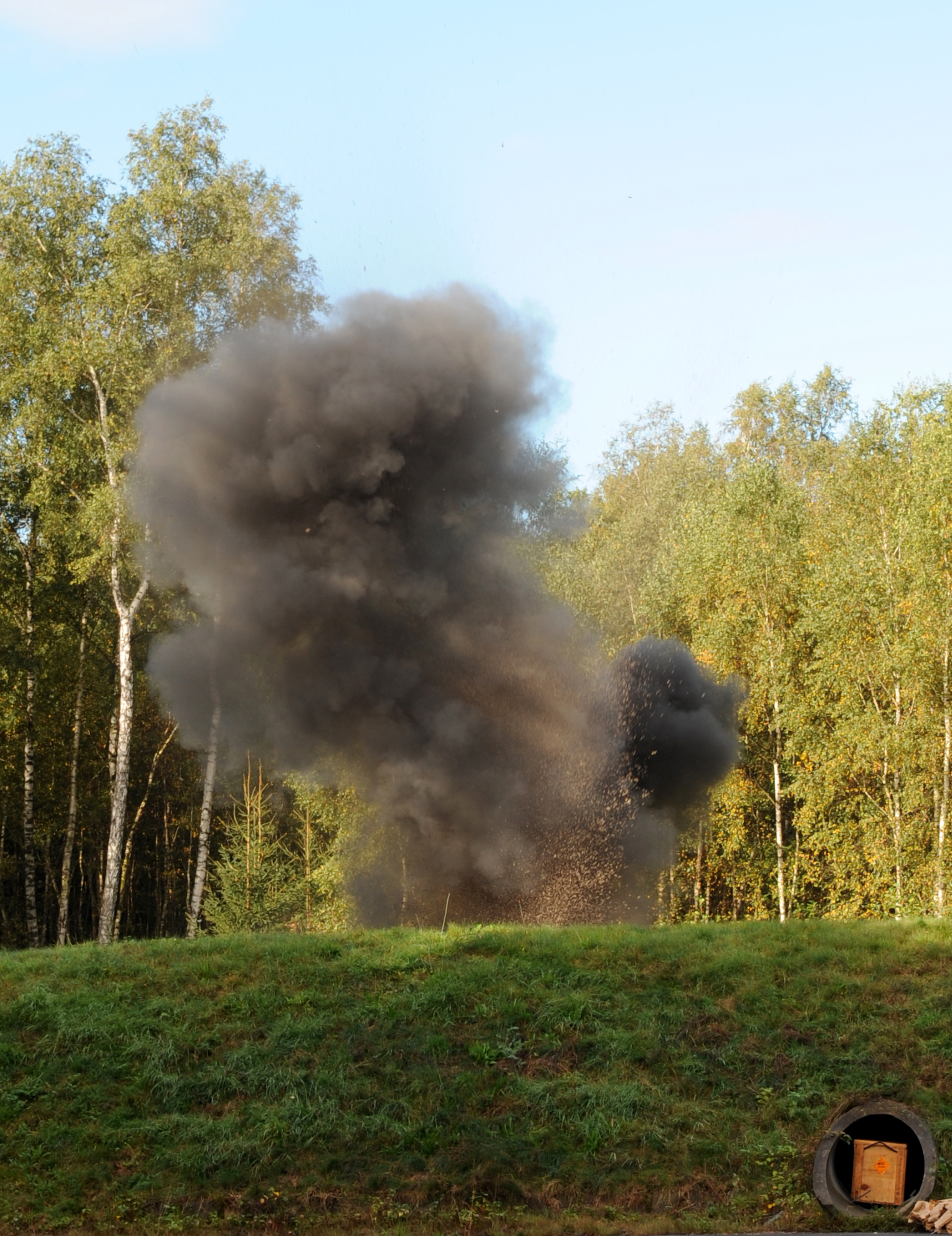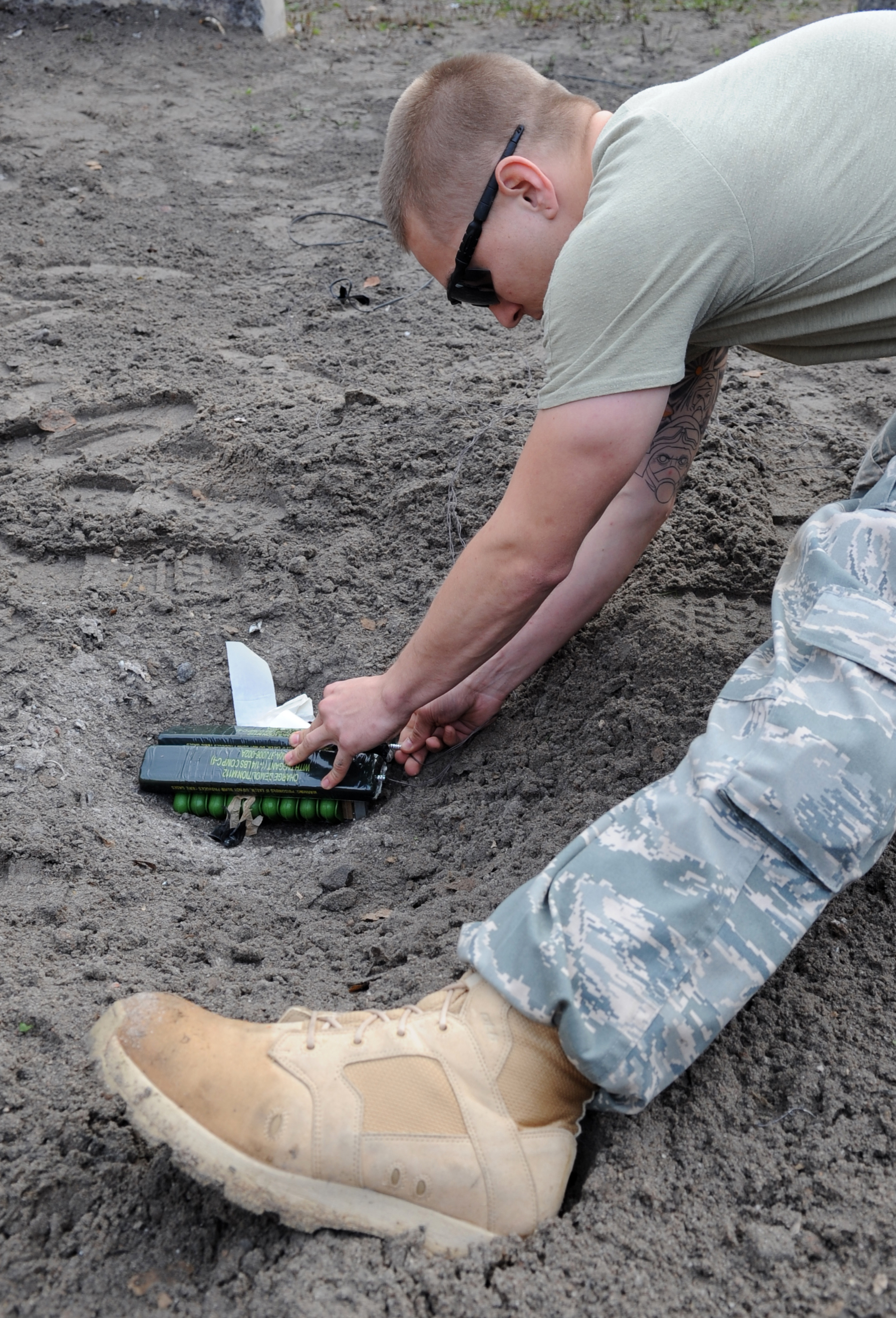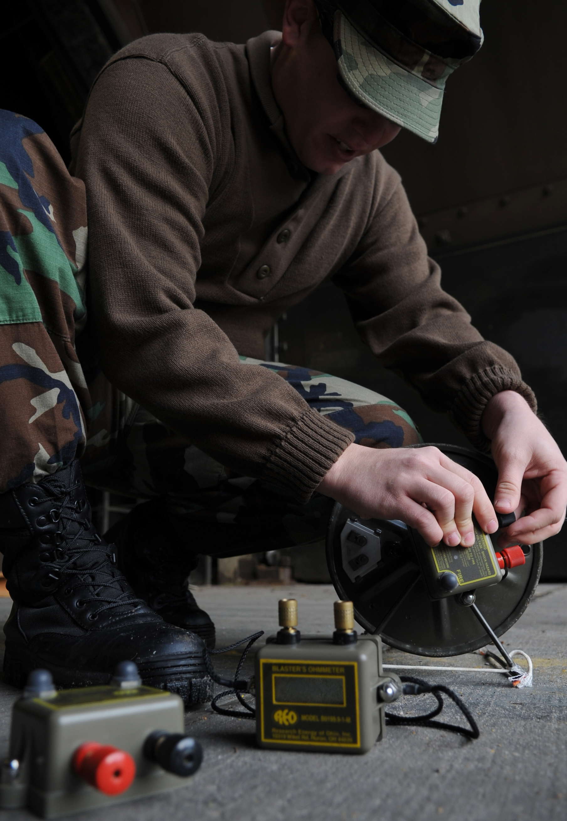 U.S. Air Force Airman 1st Class Hunter Wingo and Staff Sgt. Randi Morris, 86th Security Forces Squadron, perform a post attack reconnaissance sweep during the operational readiness inspection, Ramstein Air Base, Germany, Oct. 3, 2010. The ORI is designed to test Airmen's ability to survive, operate and perform fundamental duties in a war time environment. (U.S. Air Force photo by Airman 1st Class Desiree Esposito/Released)