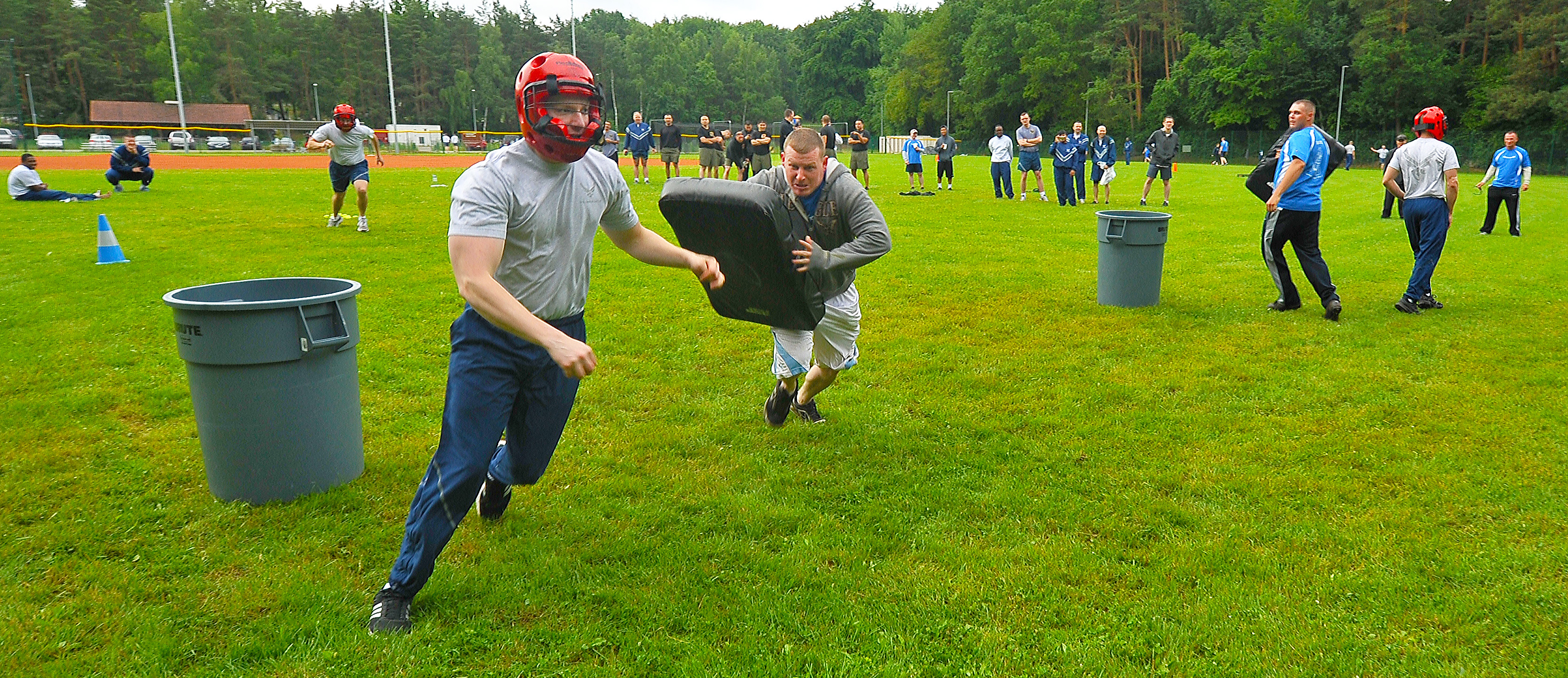 Airmen from the 435th Air Ground Operations Wing participate in sports day, June 24, 2013, Ramstein Air Base, Germany. The mission of the 435th AGOW is to rapidly establish expeditionary airfield operations and communications while integrating across the full spectrum of conflict, and provide combat support and training. Every few months the 435th AGOW conduct a sports day as an opportunity for them to get to know each other outside the work place and build camaraderie. (U.S. Air Force photo/Airman 1st Class Dymekre Allen)