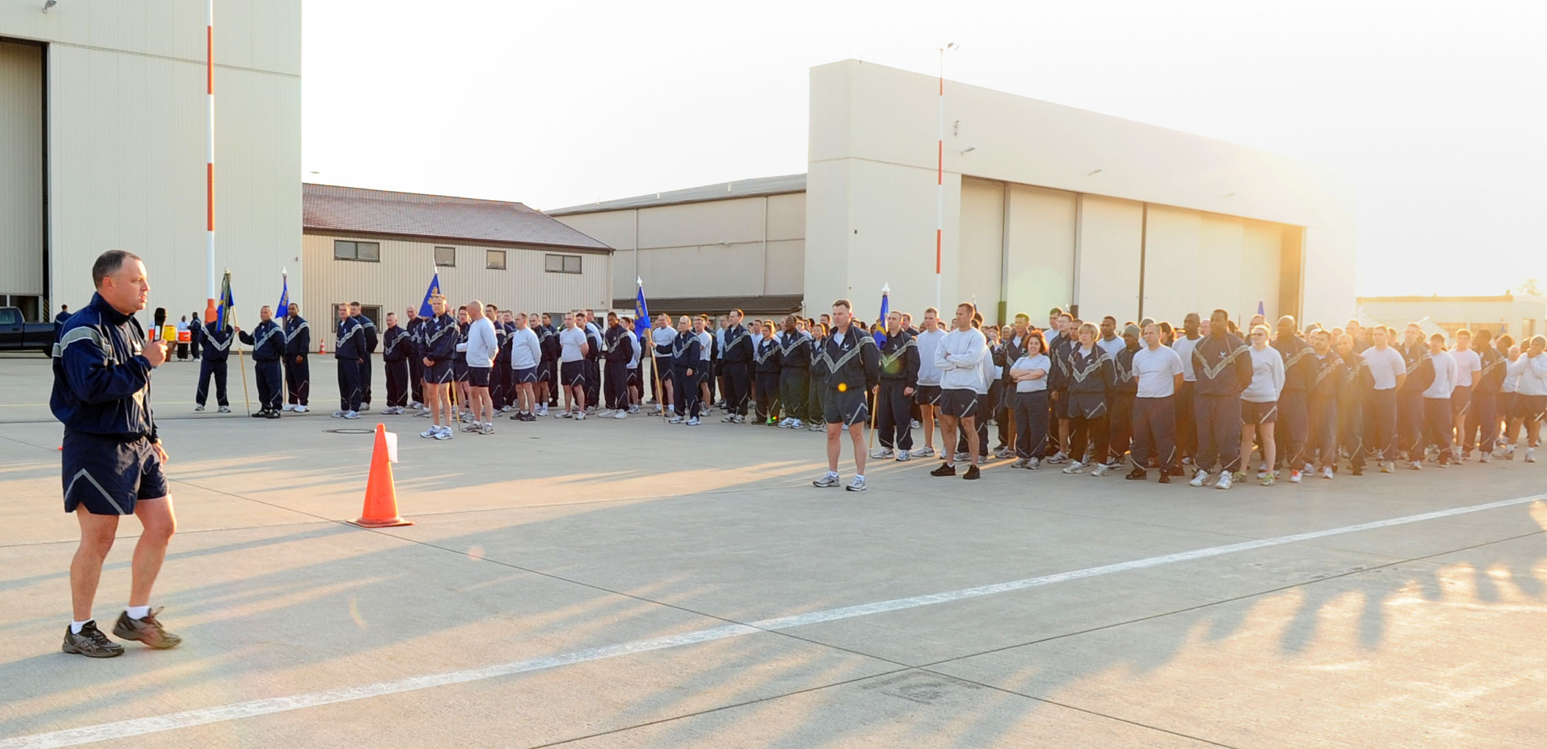 U.S. Air Force Col. Stephen Lambert, 86th Airlift Wing vice commander, gives some words before leading the Memorial Day Wing Run, Ramstein Air Base, Germany, May 5, 2011. Wing runs are designed to promote esprit de corps and unity as well as emphasize the importance of fitness in the advent of the newly implemented Air Force physical fitness standards. (U.S. Air Force photo by Senior Airman Brittany Perry)