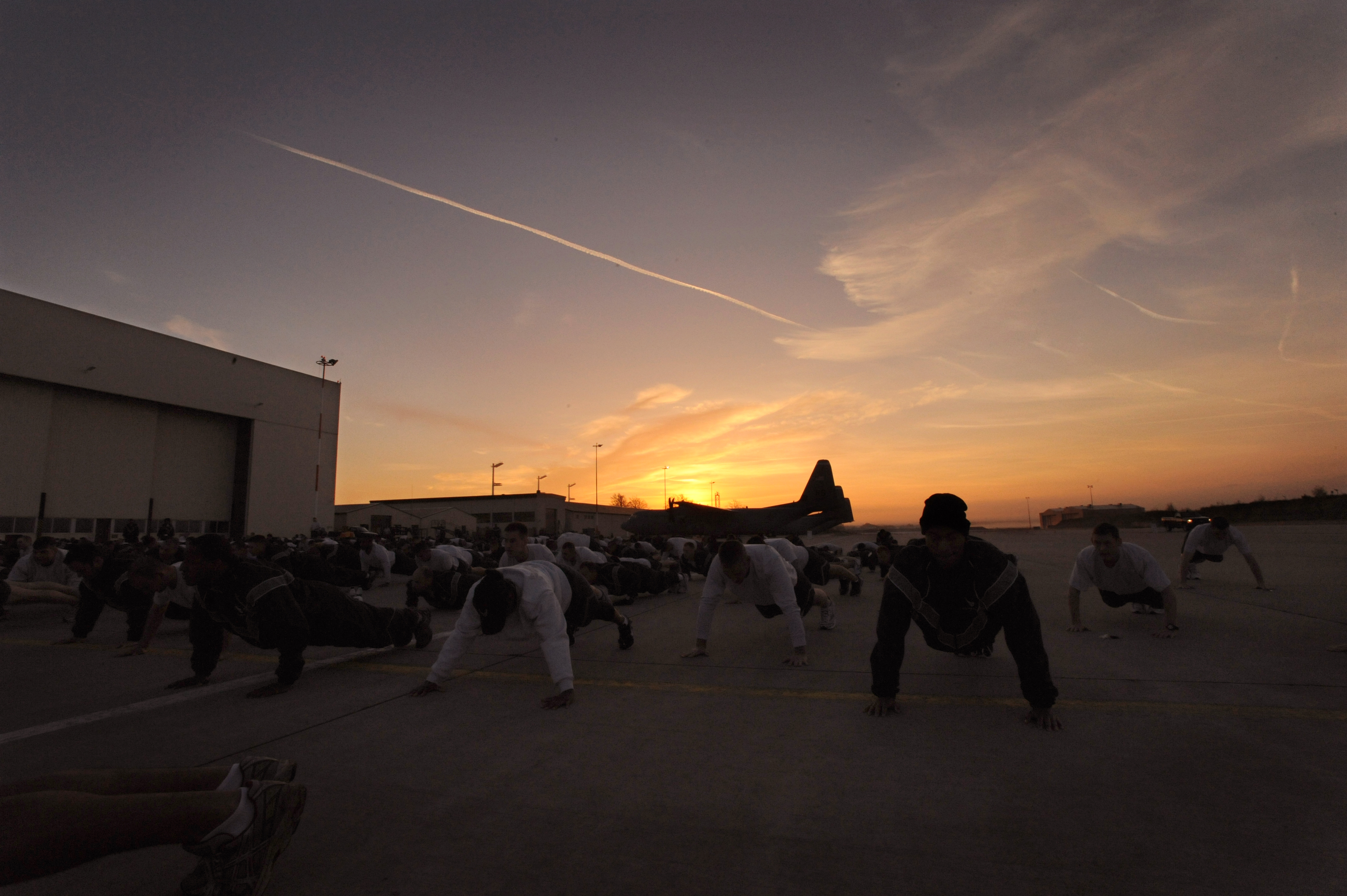 U.S. Air Force Airmen from the 86th Airlift Wing, run during the Easter Egg Wing Fun Run on the flightline, Ramstein Air Base, Germany, April 7, 2011. The wing's run was designed to promote esprit de corps and unity as well as emphasize the importance of fitness in the advent of the newly implemented Air Force physical fitness standards. (U.S. Air Force photo by Staff Sgt. Nathan Lipscomb)