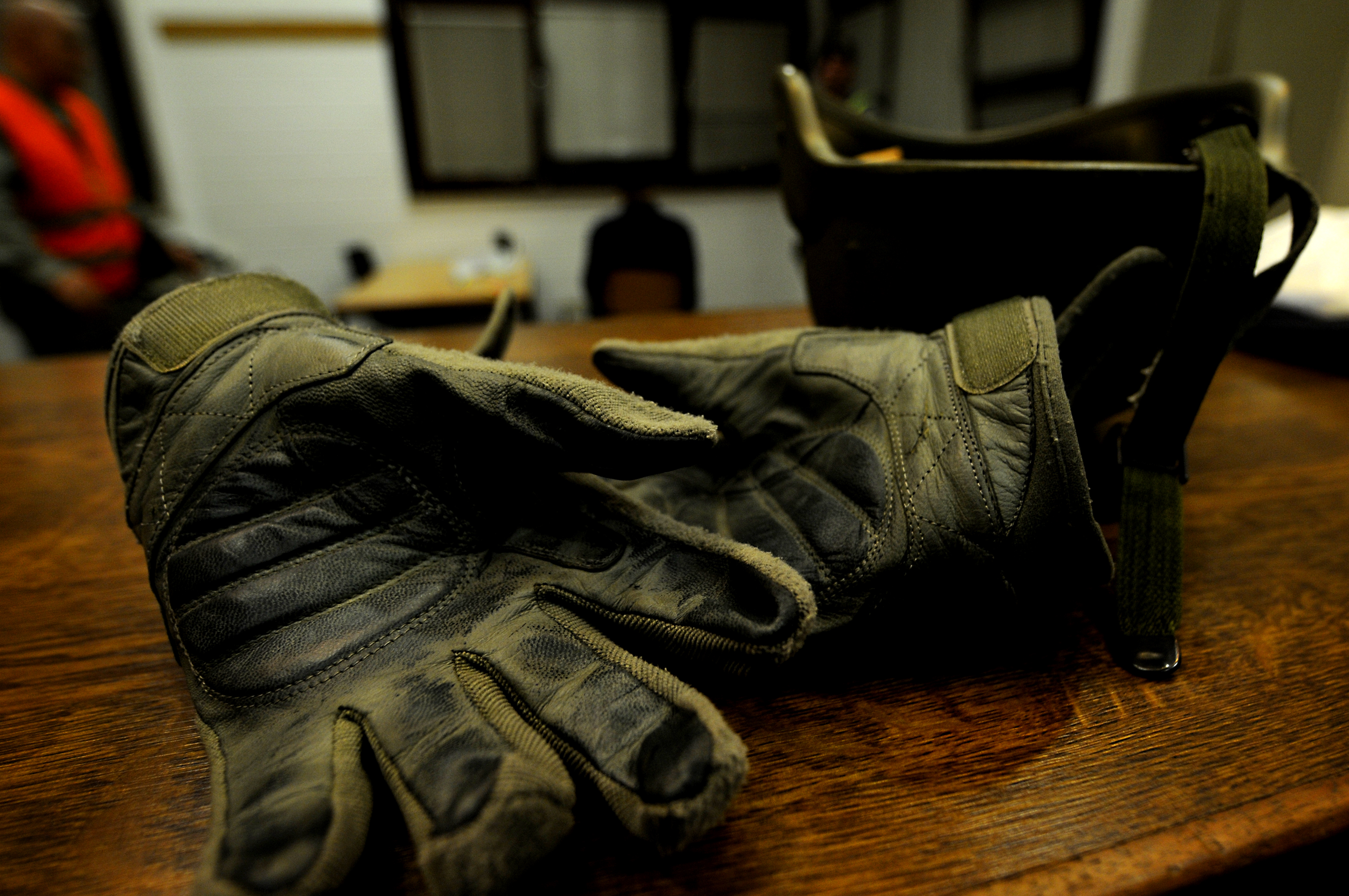 Gloves owned by U.S. Air Force Tech. Sgt. Zebadiah Handleland, 86th Security Forces Squadron, lay ready for combative use during an Operational Readiness Exercise (ORE), Ramstein Air Base, Germany, May 22, 2010. An ORE incorporates a series of events that evaluate Airmen's ability to perform accurately in a timely manner while under attack or in a chemical environment. (U.S. Air Force photo by Airman 1st Class Brea Miller)