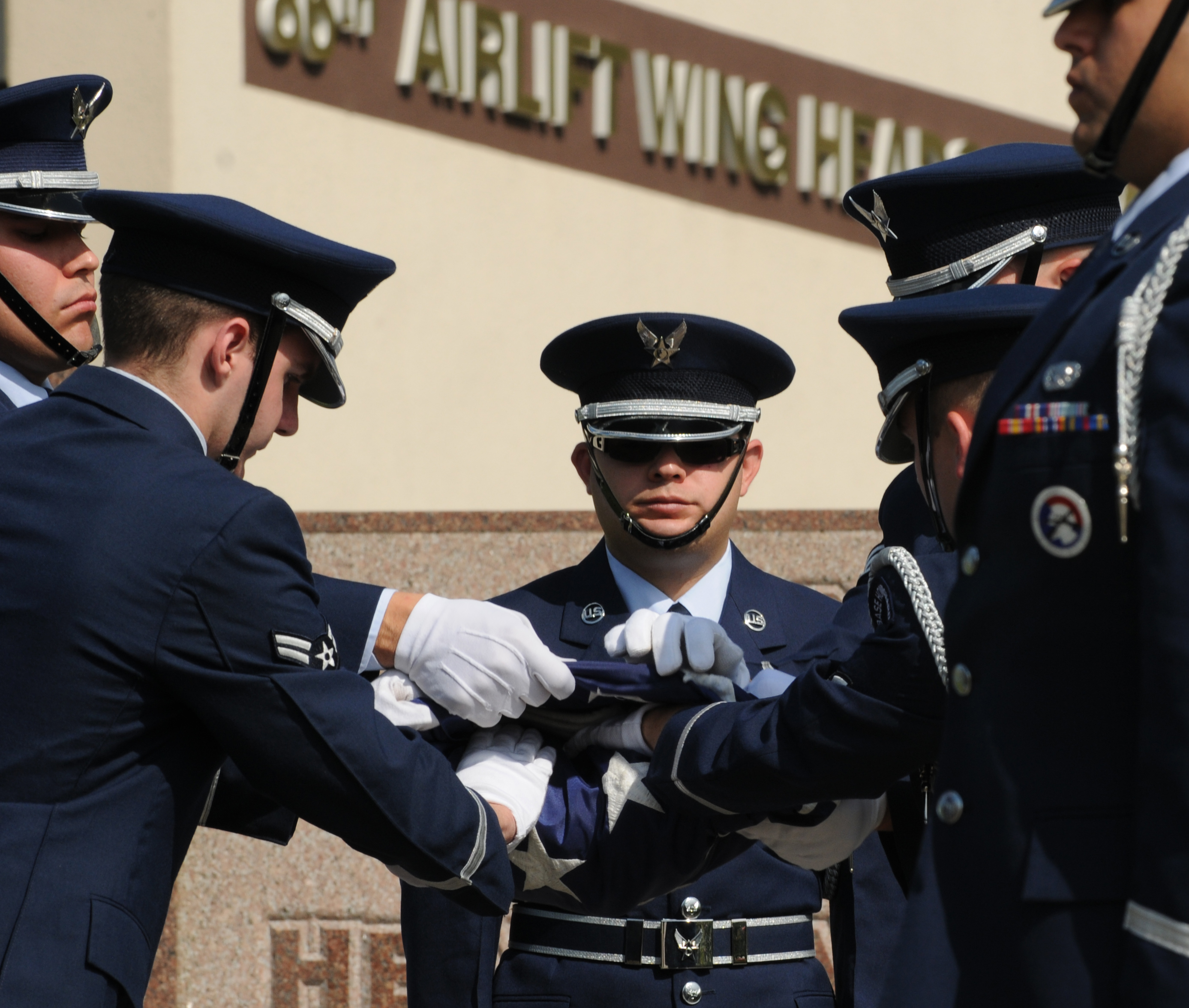 Members of the Ramstein Air Base Honor Guard fold the U.S. flag during the 9/11 Remembrance Ceremony on Ramstein Air Base, Germany. More than 400 military and civilians members of team Ramstein took part in the ceremony commemorating the eighth anniversary of the terrorist attacks on the World Trade Center and the Pentagon. (U.S. Air Force photo by Senior Airman Nathan Lipscomb)