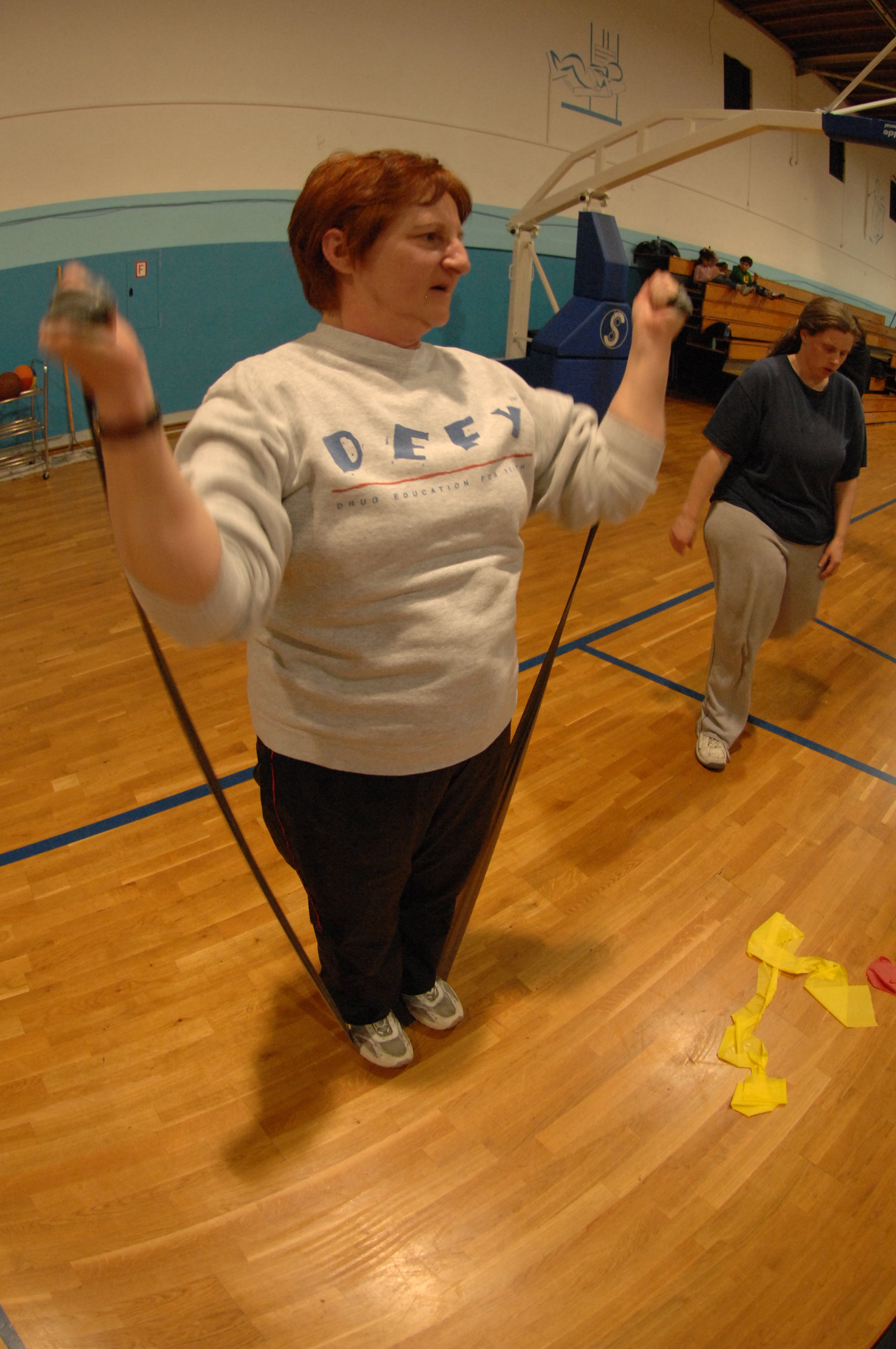 Rhonda Miller does bicep curls for circuit training Feb. 21 at Ramstein. Circuit training is part of the Lifestyle Exercise Attitudes Relationships and Nutrition program offered by the Health and Wellness Center. Photo by Airman 1st Class Amber Bressler*
