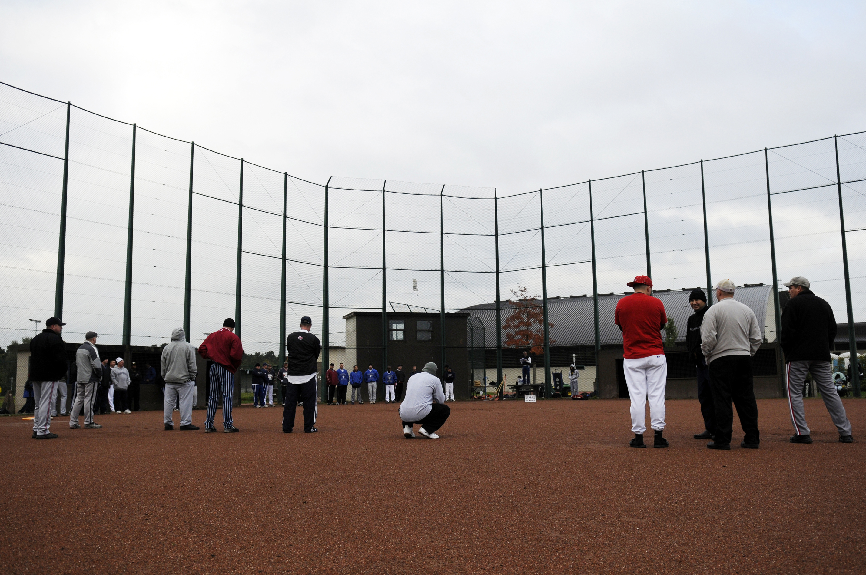 United States military members line up to be selected for teams during the European Superdraft Softball tournament, Ramstein Air Base, Germany, Oct. 4, 2008. The premise of the tournament was to bring together softball players from around Europe and separate them to create a level playing field for teams. A total of 60 players from Ramstein and several other Germany bases participated with the tournament. (U.S. Air Force photo by Staff Sgt. Sarayuth Pinthong)(Released)