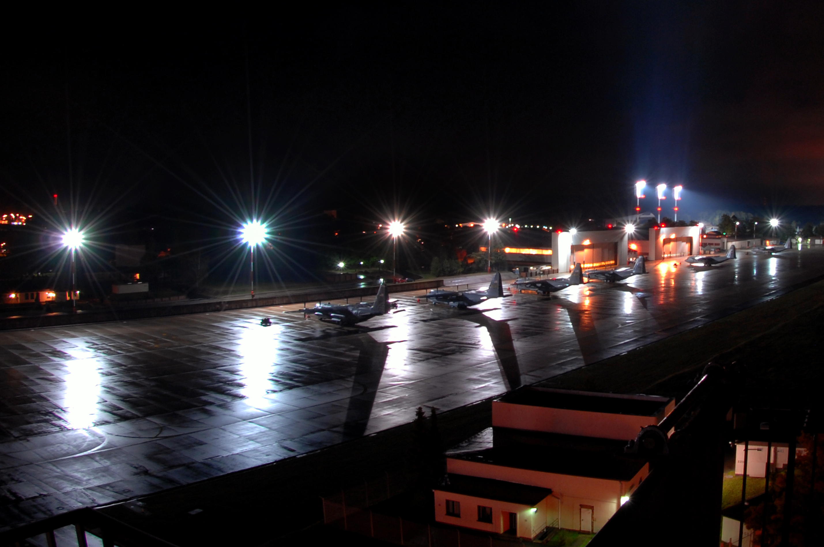 Night passes over C-130's parked on the ramp, Ramstein Air Base, Germany, Oct 1, 2008. The Ramstein flight line is one of the busiest in the Air Force, executing more than 85 aircraft operations daily. (U.S. Air Force photo by Airman 1st Class Kenny Holston)(RELEASED)*