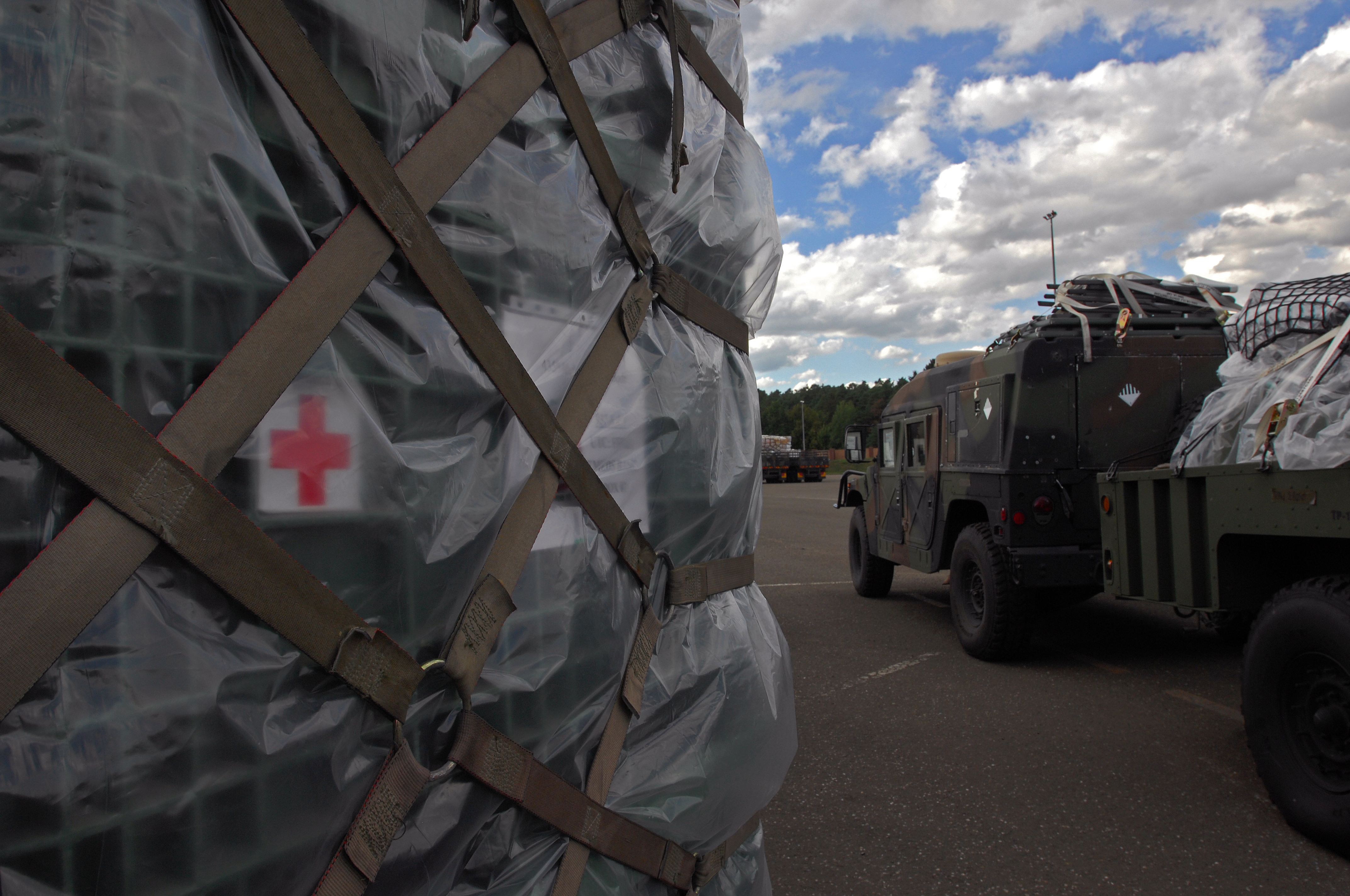 Medical supplies from the 435th Medical Group is ready to be loaded and flown to the Republic of Georgia, Aug. 14, 2008, Ramstein Air Base, Germany. These supplies will be used to provide humanitarian relief to the people of Georgia. (U.S. Air Force photo by Airman 1st Class Kenny Holston)(Released)*