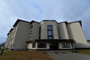 Officials from the 86th Airlift Wing, U.S. Army Corps of Engineers, and German officials celebrated the inauguration of a new dormitory building on Ramstein Air Base, Germany, March 7, 2018. The crowd welcomed dormitory 2411 and its residents with an informal ribbon-cutting ceremony. Capt. Bethany